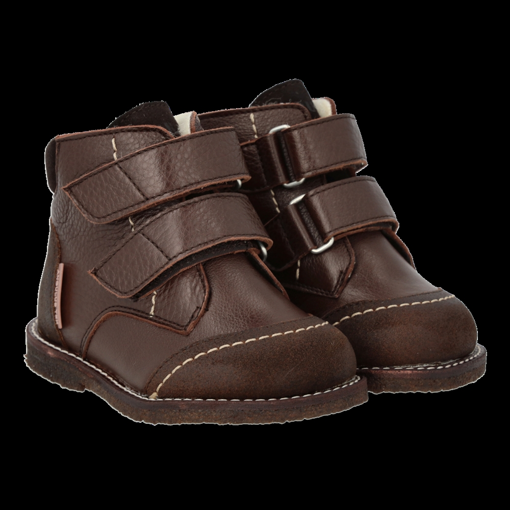 Vores lækre vinterstøvler er fremstillet i holdbart mørkebrunt læder med robuste detaljer, der sikrer langvarig brug. Denne model er udstyret med en PFAS-fri TEX-membran, der garanterer, at små fødder forbliver tørre og varme, uanset vejrets luner. Det indre af støvlen har en blød vattering og er foret med 100% merino uld, som ikke kun varmer, men også tillader fødderne at ånde.