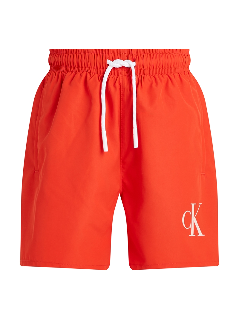 Opgrader dit barns sommergarderobe med de stilfulde og komfortable Calvin Klein Badebukser Medium Drawstring i en levende orange farve