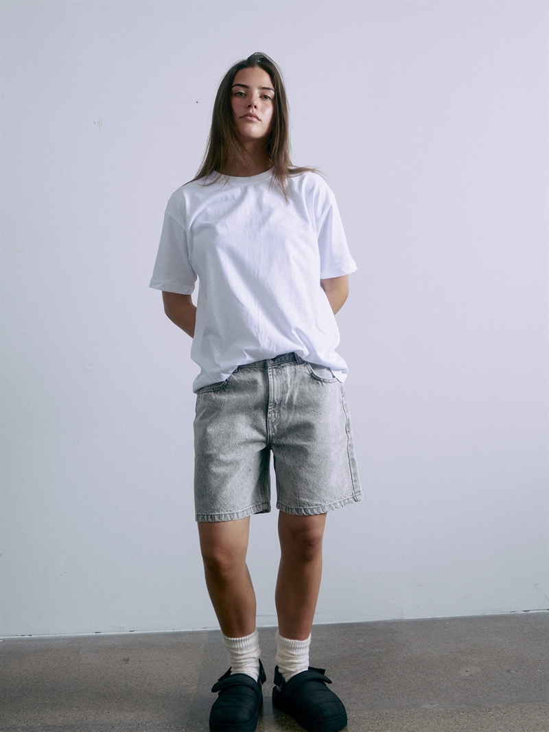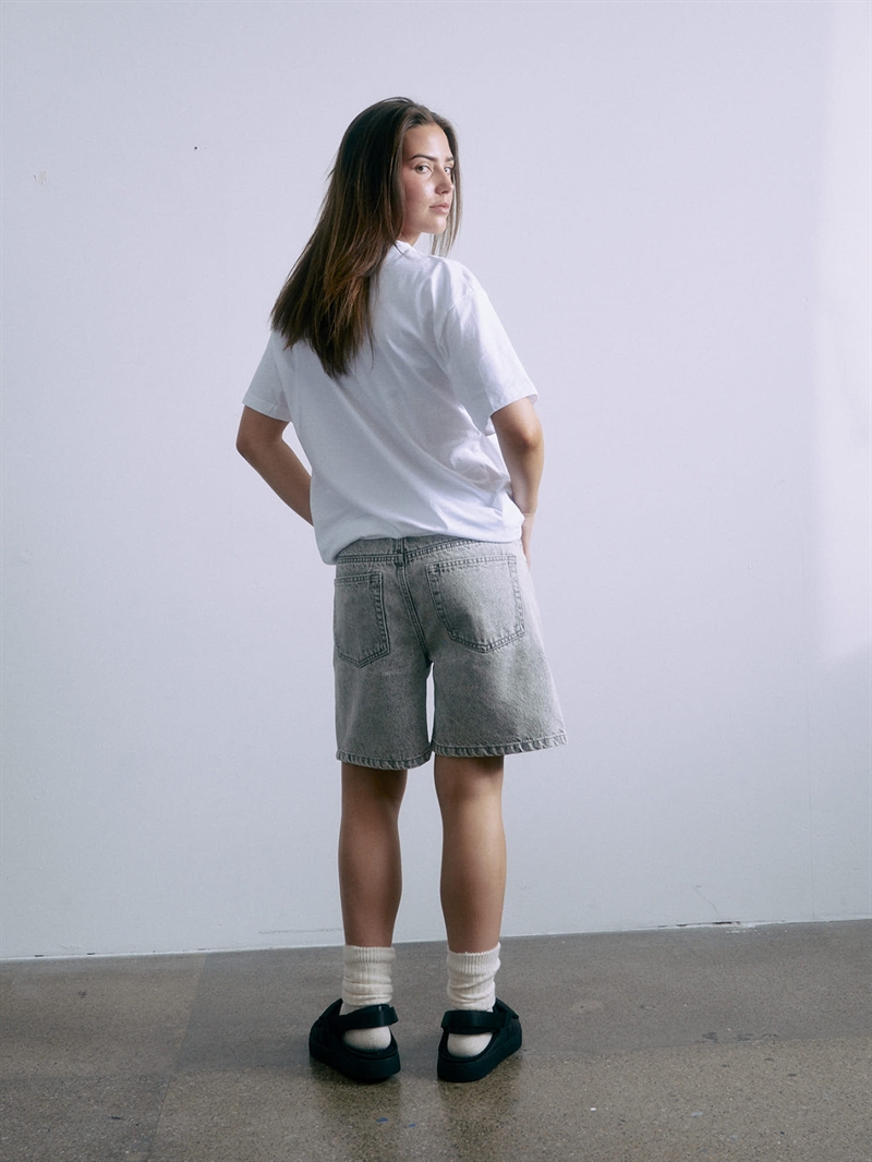 Grunt Shorts Glori Mid-Rise Cement er fremstillet af 100% bomuld, hvilket sikrer en behagelig pasform og åndbarhed gennem hele dagen, perfekt til både aktive og afslappende dage. De fem praktiske lommer tilføjer både funktionalitet og et touch af stil, mens lynlåsen sikrer en glat og sikker lukning.