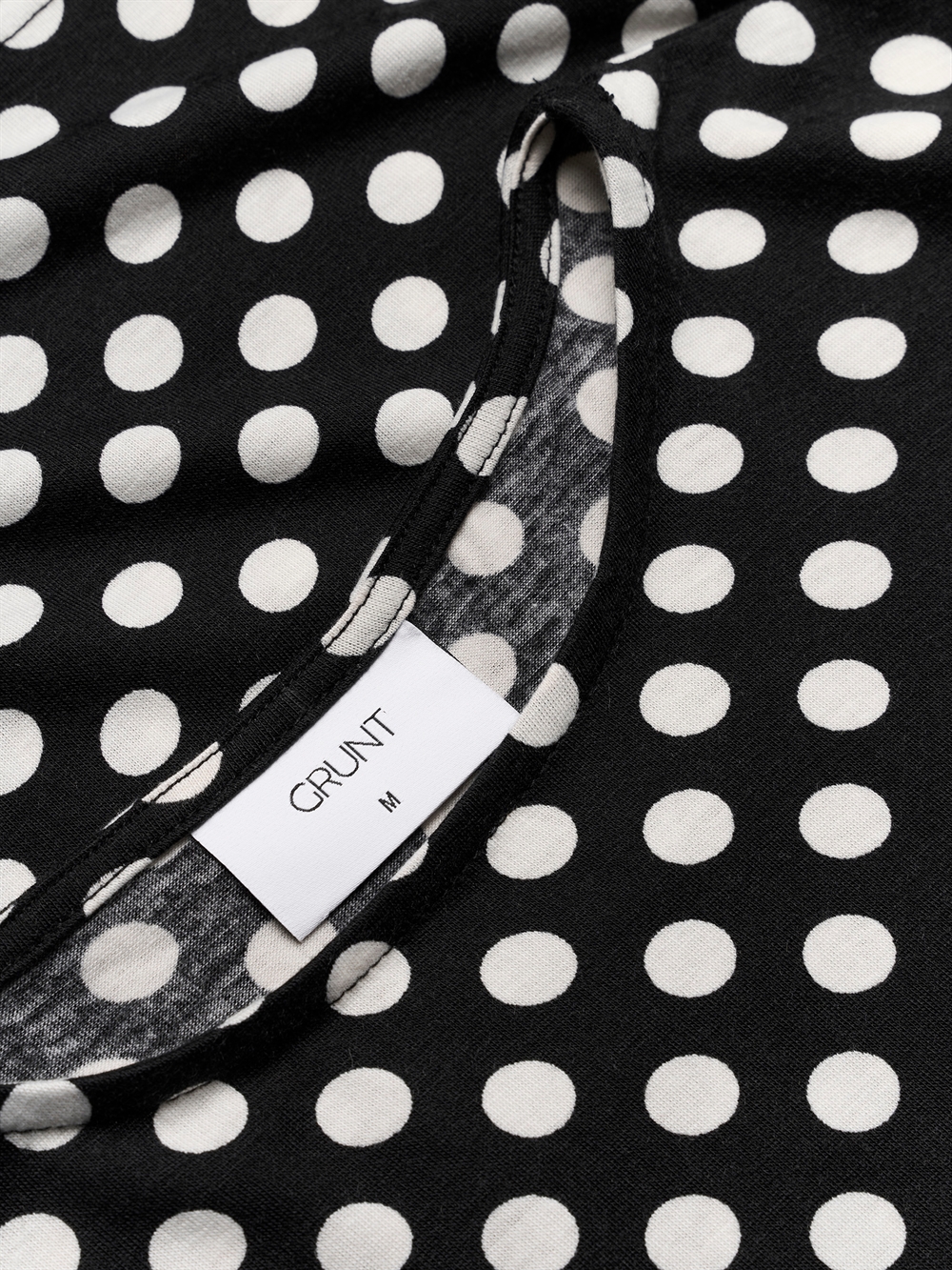 Uanset om du er på udkig efter en ny top til skole, fritidsaktiviteter eller en familie begivenhed, er 'Grunt Top Nova Dots - Black' et sikkert valg. Den vil uden tvivl blive en favorit i garderoben med sin alsidighed og stilfulde design.