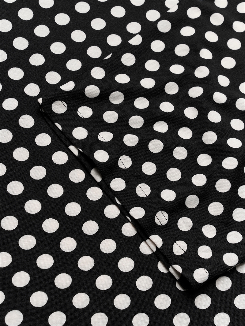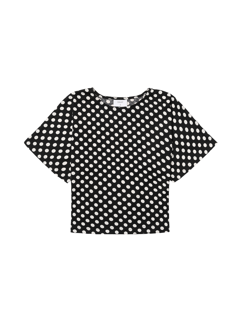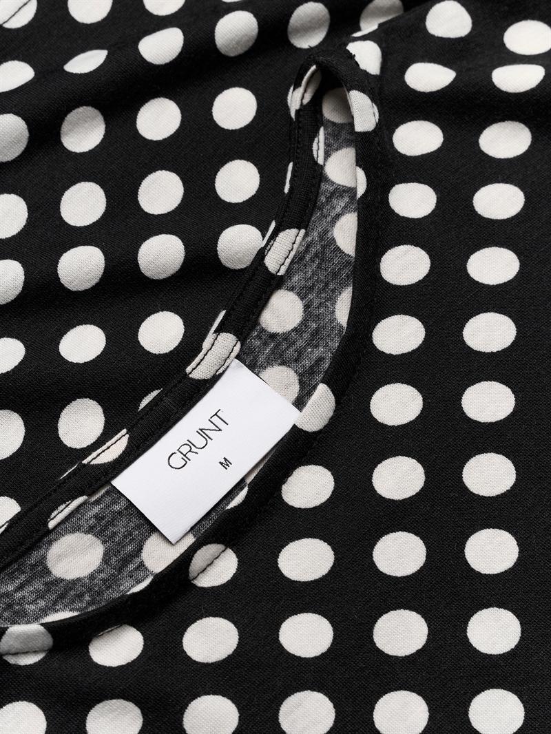 Denne top fra det anerkendte mærke GRUNT kombinerer komfort og elegance med sit unikke prikkede design og klassiske sorte farve. Perfekt til både hverdagsbrug og særlige lejligheder, denne top er designet til at tilbyde både stil og funktionalitet. Med sit lette og åndbare materiale sikrer den optimal komfort hele dagen, mens det tidløse sorte farvevalg gør den nem at kombinere med andre beklædningsdele for et chic look.