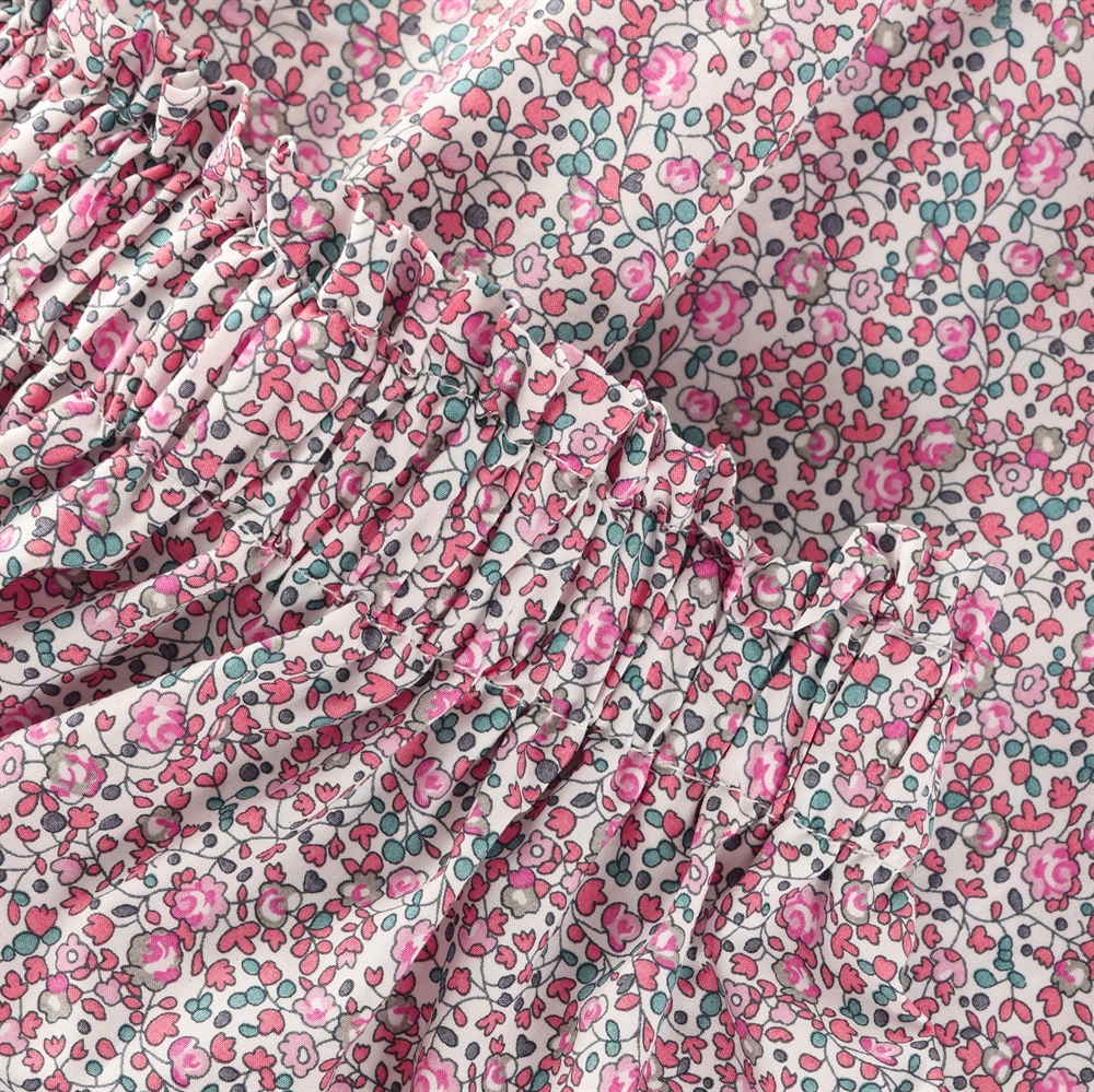 Denne nederdel er fremstillet af det anerkendte Liberty Fabric, kendt for sin ekstraordinære kvalitet og eksklusive mønstre. Med sin livlige pink farve og det iøjnefaldende mønstrede design vil denne nederdel uden tvivl blive en favorit til både hverdagsbrug og særlige anledninger.