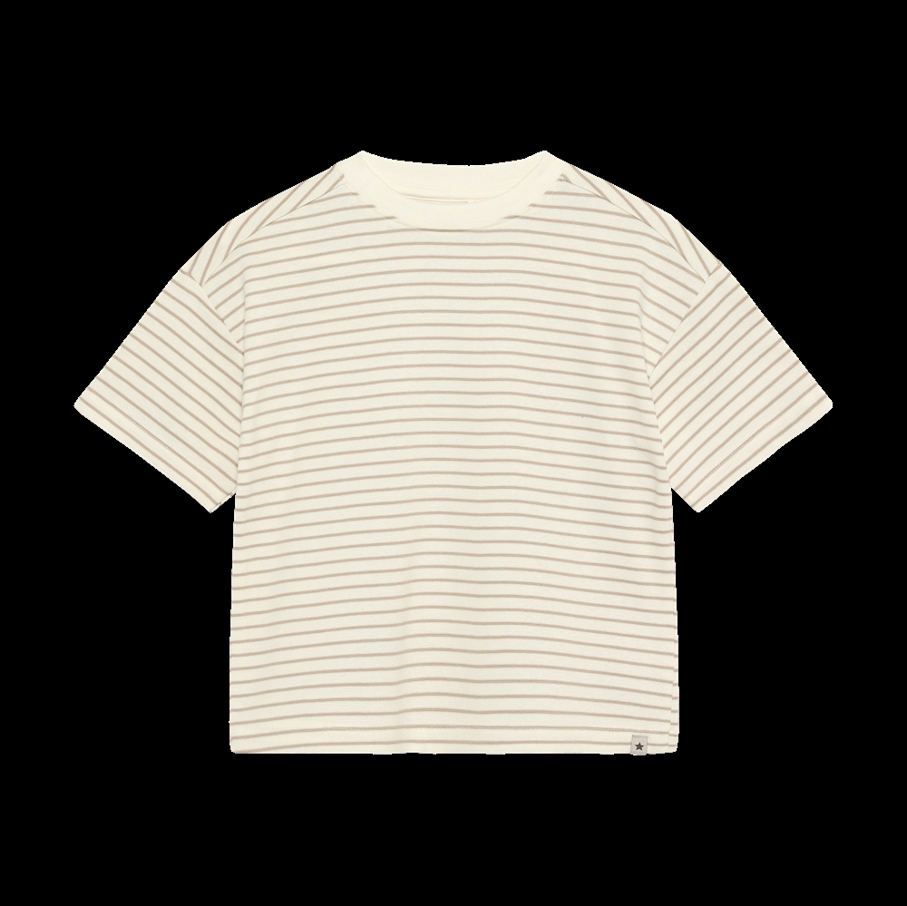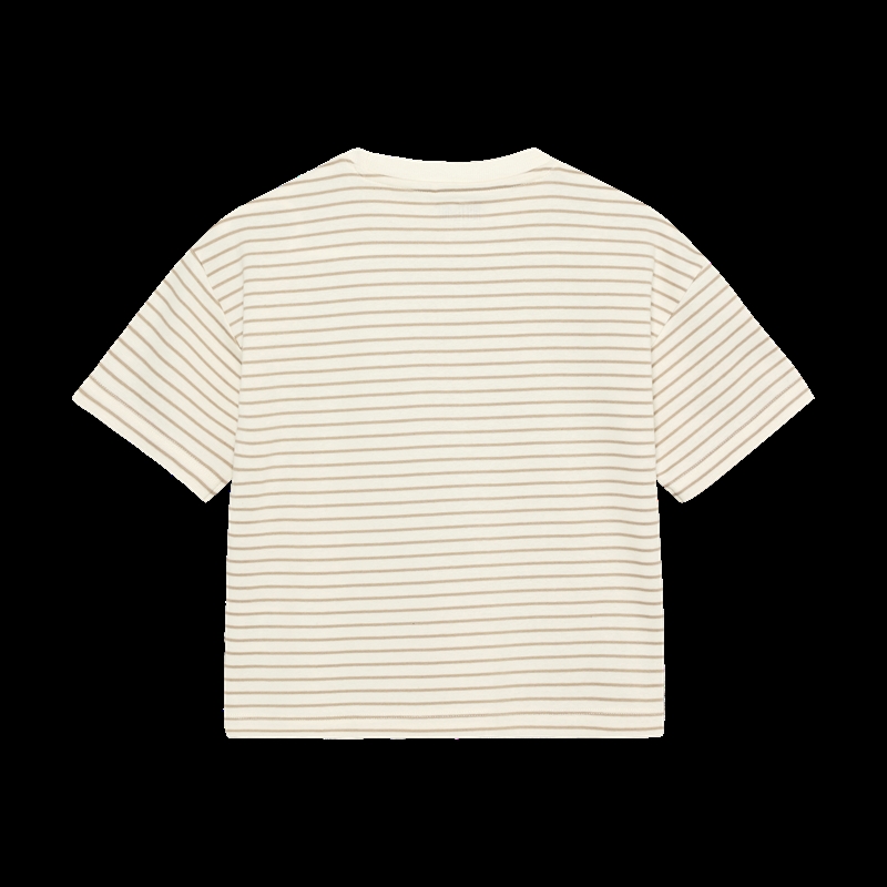 T-shirten kommer i en smuk beige farve, der nemt kan kombineres med forskellige bukser og shorts for et stilfuldt look. Det klassiske stribede mønster tilføjer et tidløst touch, mens det anerkendte mærke Huttelihut garanterer høj kvalitet og holdbarhed. Dette er et ideelt valg for forældre, der ønsker det bedste for deres børn, både hvad angår mode og funktionalitet.