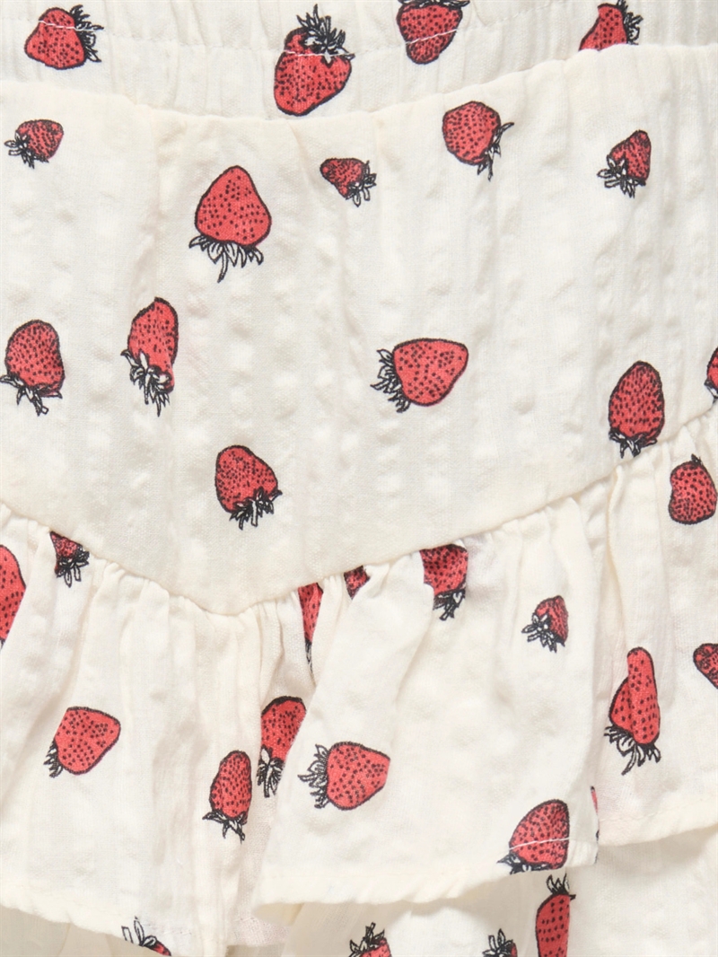 Fra det populære mærke Kids Only, er denne skønne skort designet specielt til piger og kombinerer stil med funktionalitet. Den charmerende cerise farve og det søde jordbærprint gør denne skort til en favorit i enhver pige garderobe.