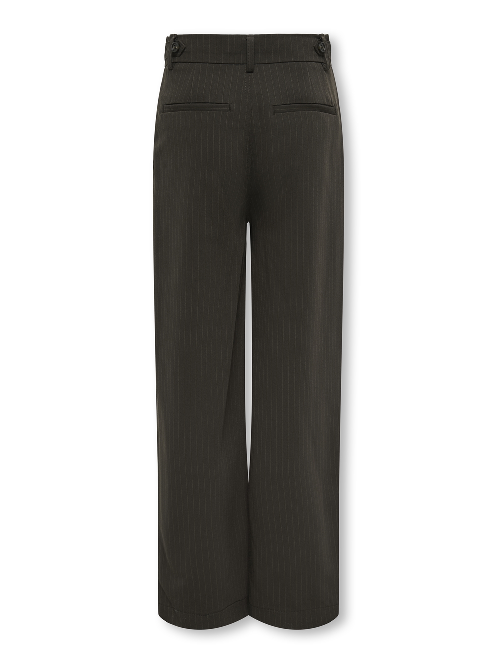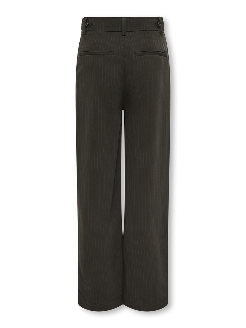 Egenskaber: - Produkttype: Bukser med vidde ben - Lukning: Knap og lynlås - Lommer: Baglommer - Talje: Høj talje - Længde/Størrelse: Ankel længde - Særlige detaljer: Elastik i taljen for optimal pasform - Pasform: Wide Leg Fit