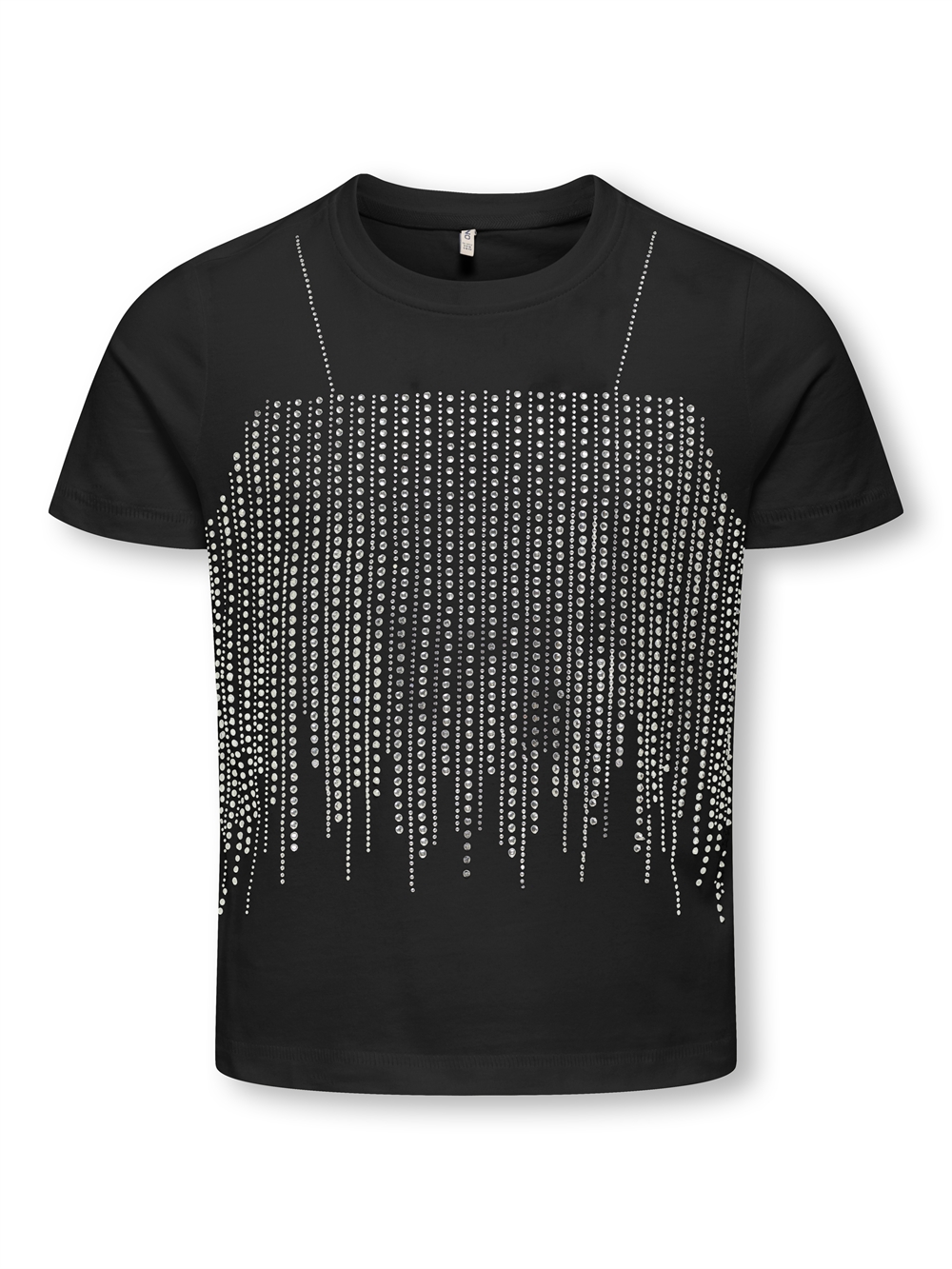 Denne T-shirt fra Kids Only er fremstillet af bløde materialer, der sikrer dit barns komfort gennem hele dagen, uanset om det er til skole, legeaftaler eller familieudflugter. Rhinstensdetaljerne tilføjer et unikt præg, som vil få dit barn til at skille sig ud i mængden med et strejf af elegance.