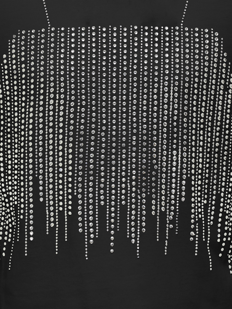 Produktdetaljer: - Produkttype: T-shirt - Halsudskæring: Rund hals - Ærmer: Korte ærmer - Særlige Detaljer: Dekoreret med rhinsten for et touch af glamour - Pasform: Oversize, der giver en afslappet og behagelig pasform.