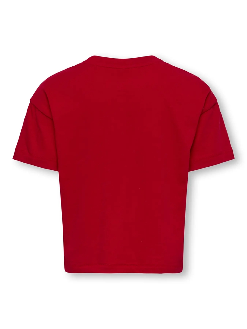Opgrader din lille piges garderobe med "Kids Only T-Shirt Kitty Life - Cherry," en charmerende og komfortabel tilføjelse fra ONLY MINI's børnetøjskollektion