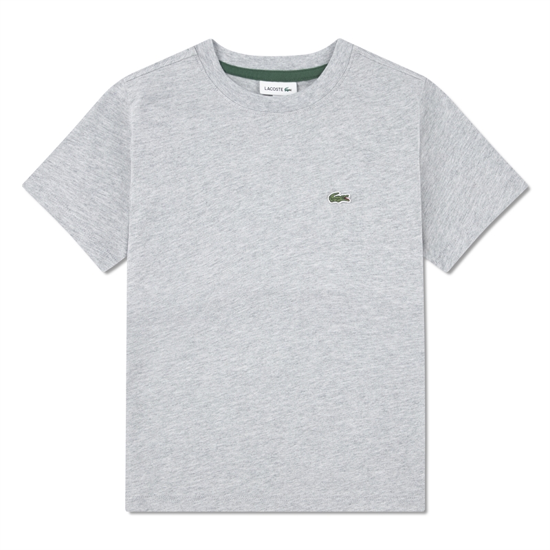 T-shirten har det klassiske Lacoste-krokodille logo diskret placeret, hvilket tilføjer et touch af luksus.Uanset om den kombineres med jeans, shorts eller under en jakke, tilfører denne Lacoste T-shirt i grå en smart, men afslappet flair til enhver drengs outfit. Den er et must-have i enhver ung modeentusiasts garderobe, der ønsker at fremstå skarp og moderne.
