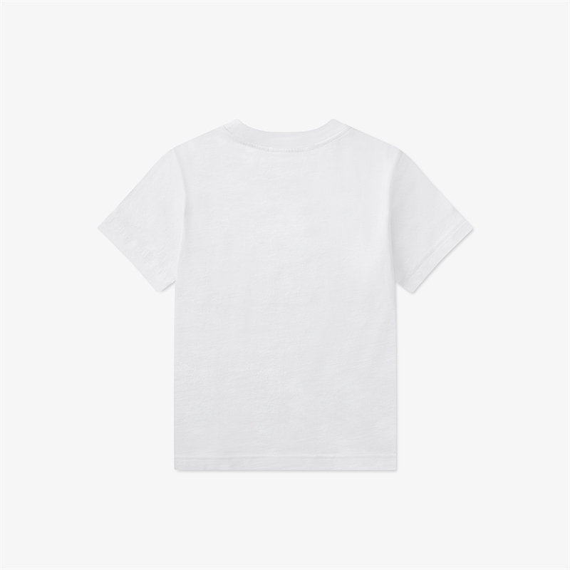 Denne hvide T-shirt er fremstillet af premium materialer, der sikrer en blød og behagelig følelse mod huden, hvilket gør den ideel til både aktiv leg og afslappede dage.