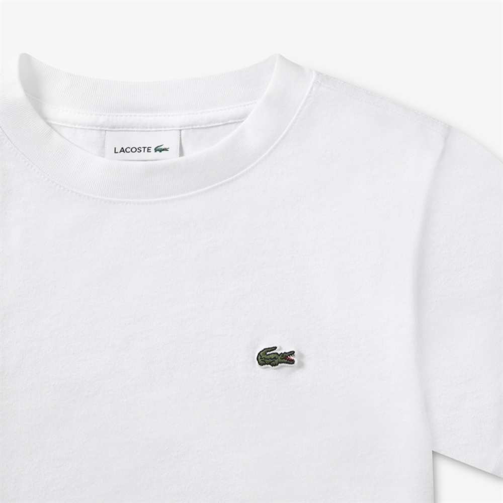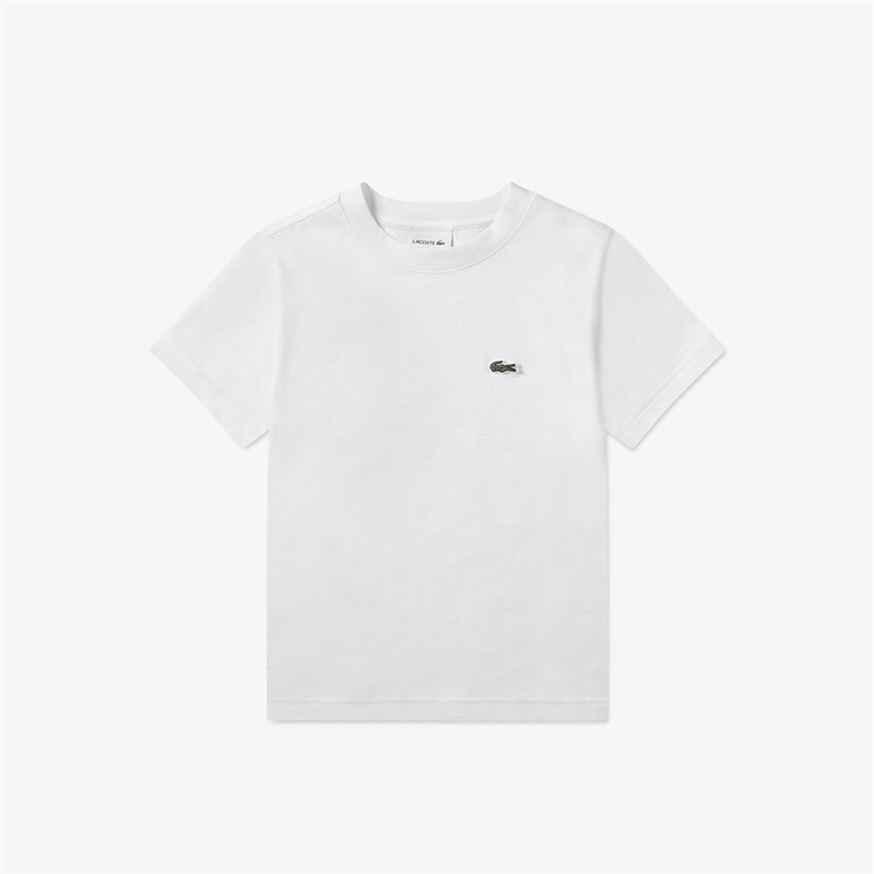 Opdag den stilfulde og komfortable 'Lacoste T-shirt - Hvid', det perfekte valg til enhver ung dreng, der værdsætter klassisk design og kvalitet