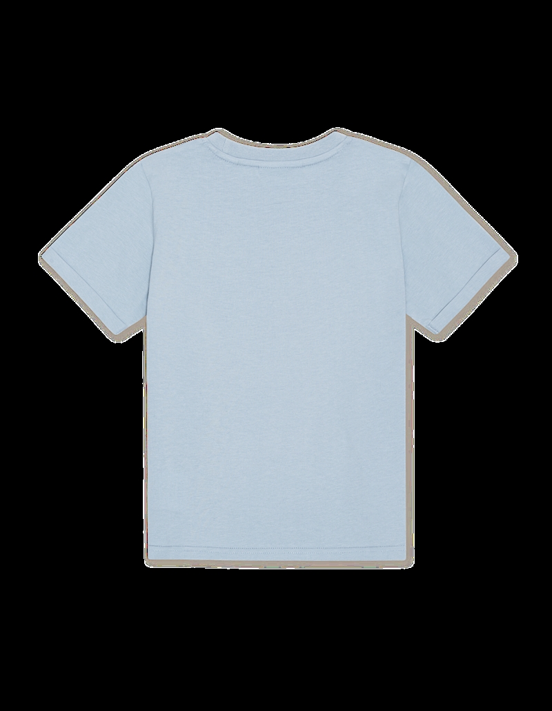 T-shirten præsenterer sig i en smuk, blå farvetone, som tilfører et frisk pust til drengens tøjvalg. Farven Blue Fog er ikke kun tiltalende for øjet, men også utrolig alsidig og let at matche med andre beklædningsdele, såsom jeans, shorts eller chinos for et afslappet, men stilfuldt look.