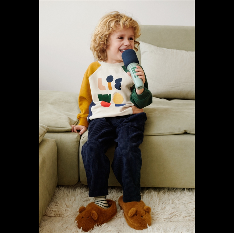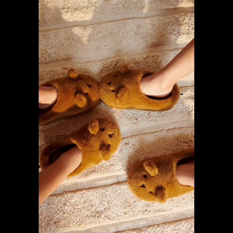 Disse yndige børnesko, formet som små bjørne, er fremstillet af 100% GRS-certificeret polyester, garanterende både bæredygtighed og en silkeblød fornemmelse. Perfekte til brug indendørs, disse hjemmesko er ideelle til at holde dit barns fødder varme og komfortable på koldere dage.