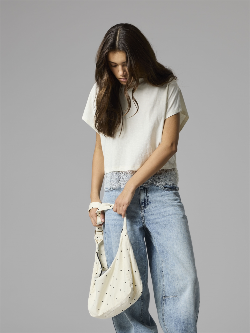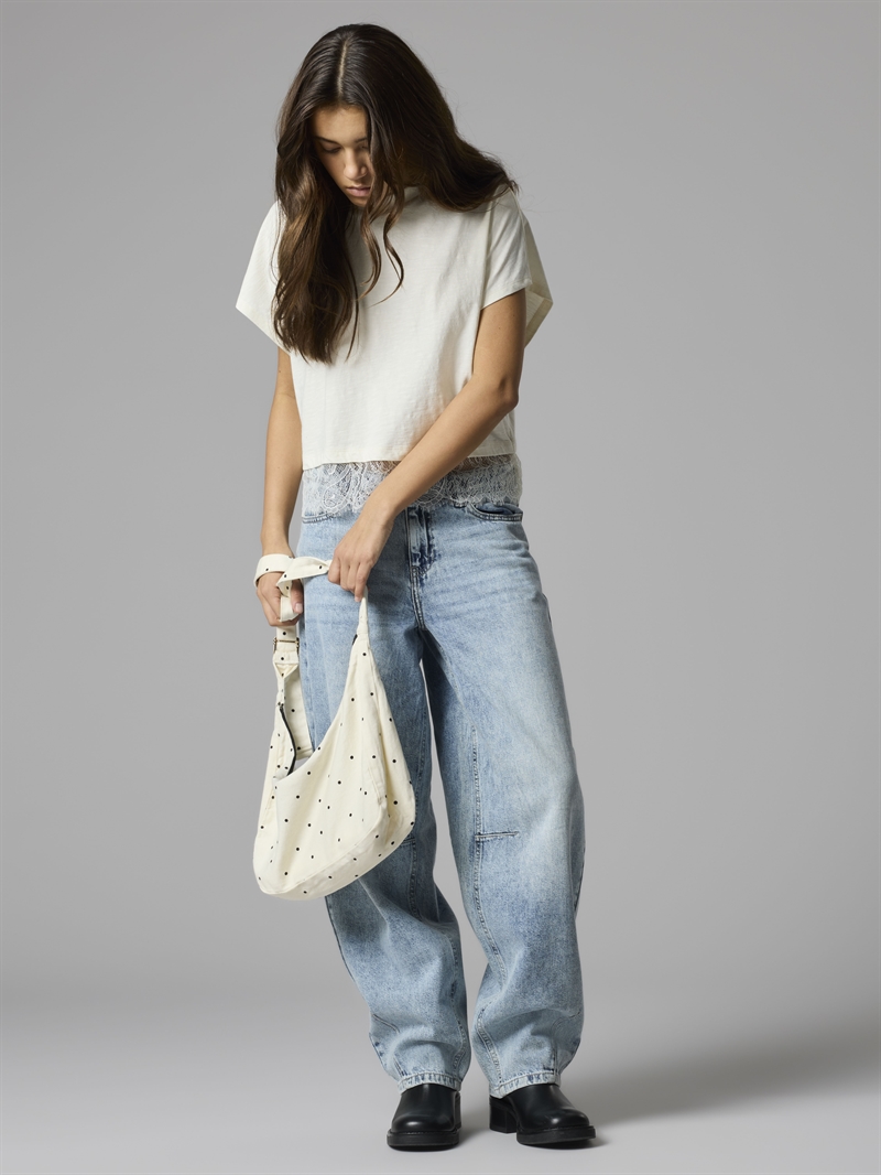 Denne LMTD Dot taske er designet til at følge med i en travl hverdag. Den har et moderne all-over print og en klassisk antik hvid farve, som gør den nem at style til ethvert outfit – uanset om det er skole, venindehygge eller fest.
