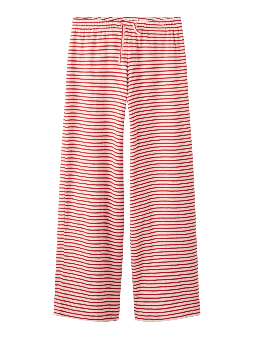 Fremstillet af et blødt og holdbart materiale, tilbyder disse bukser en ideel kombination af funktionalitet og moderne æstetik. Farven hibiscusrød tilføjer en livlig og ungdommelig touch til designet, hvilket gør dem perfekte til alt fra afslappede dage derhjemme til aktive eftermiddage ude med vennerne.
