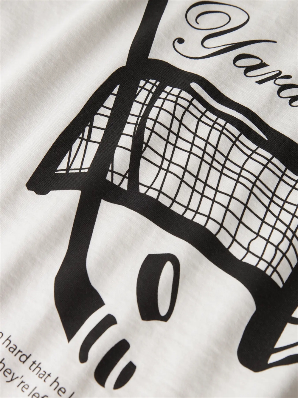 Vigtigt at fremhæve er, at denne T-shirt er fremstillet af 100% økologisk bomuld, hvilket ikke kun gør den blød og behagelig, men også sikrer en mere bæredygtig produktion. Den økologiske bomuld i denne T-shirt er certificeret, hvilket betyder, at mindst 50% af materialet er dyrket uden brug af skadelige kemikalier og pesticider, hvilket er bedre for både miljøet og for dem, der bærer tøjet. Farven 'White Alyssum' er ren og frisk, hvilket gør den nem at matche med andre farver og mønstre, og gør den til et must-have i enhver drengs garderobe, der værdsætter stil, komfort og bæredygtighed.