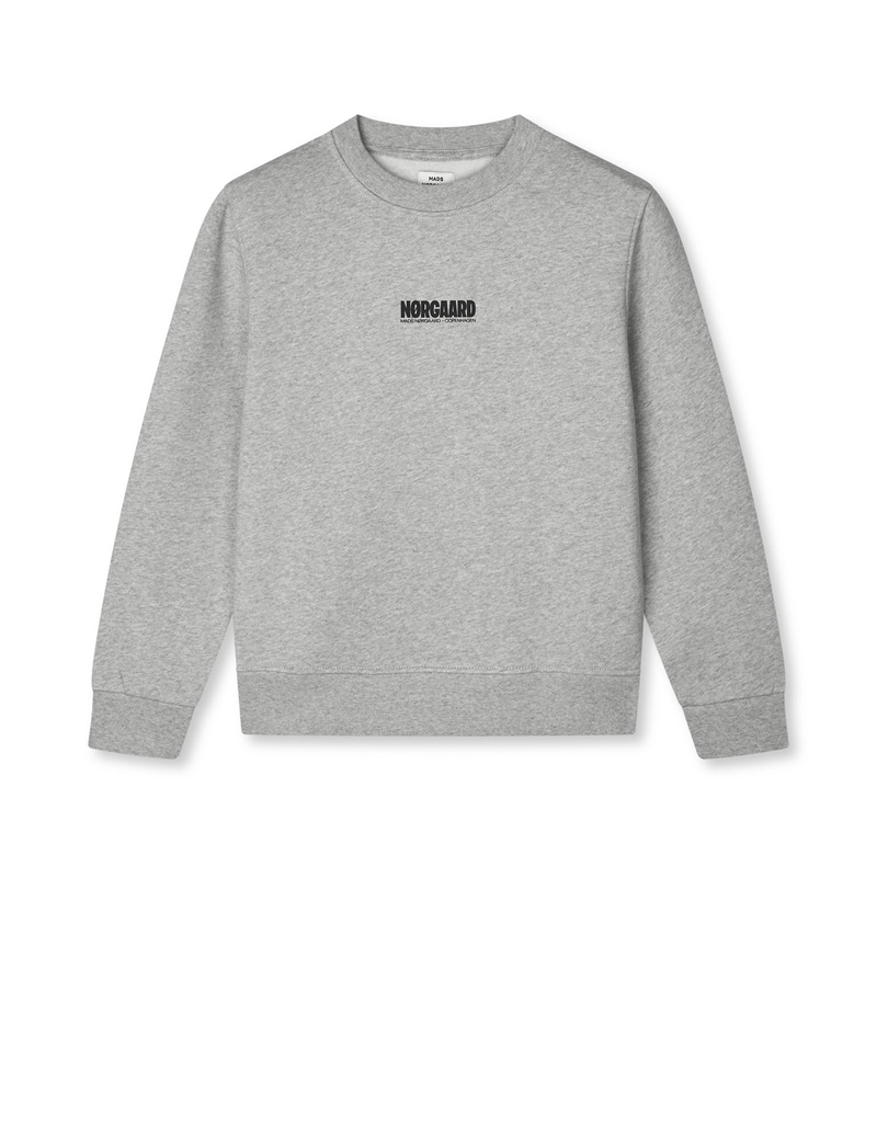 Den er perfekt til skoledage, afslappede weekendaktiviteter eller en tur i byen med vennerne. Invester i 'Mads Nørgaard Sweatshirt Solo - Grey Melange' og oplev kombinationen af funktionalitet og dansk design, når det er bedst.