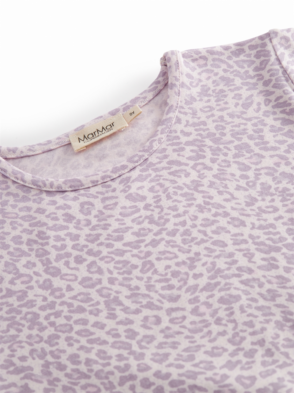 'Marmar T-shirt Leo - Lilac Leo' er perfekt til både afslappede og mere dressede anledninger. Brug den under en blazer for et professionelt look, eller par den med dine yndlingsjeans for en casual dag ude. Med sin alsidighed og iøjnefaldende design er denne T-shirt sikker på at blive en favorit i din garderobe.