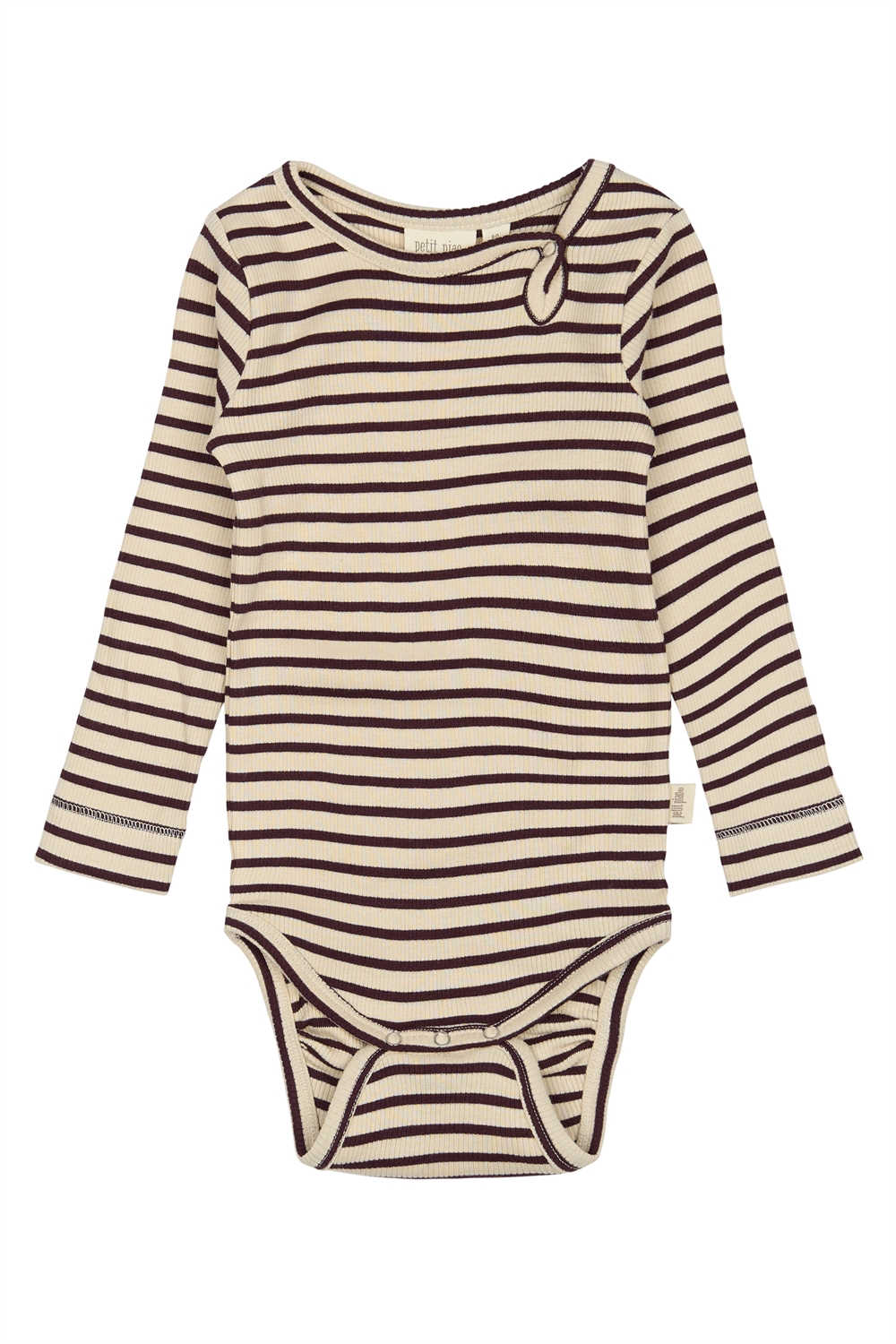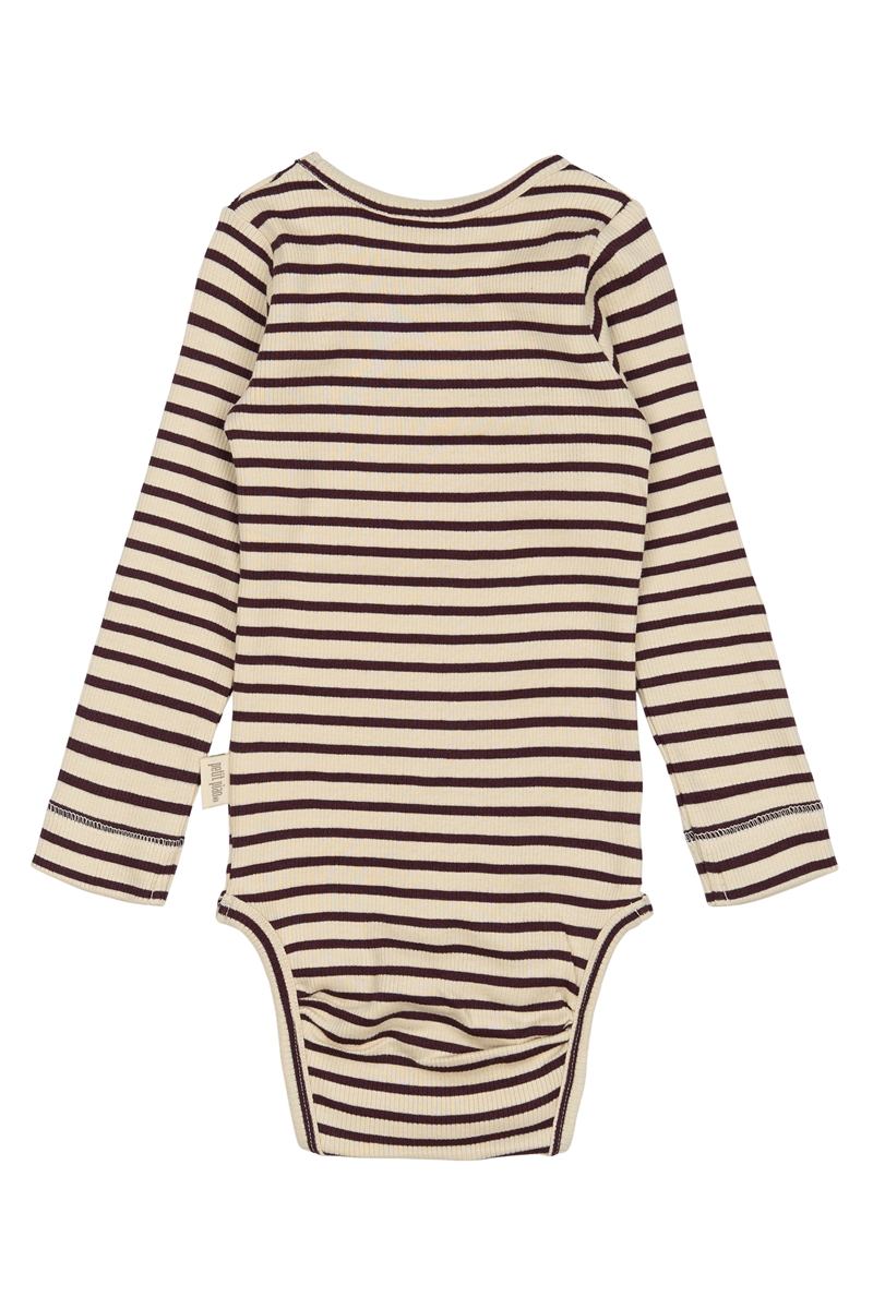 Opdag den charmerende 'Petit Piao Body Modal Striped - Dark Grape/Off White', en uundværlig del af din lille piges garderobe