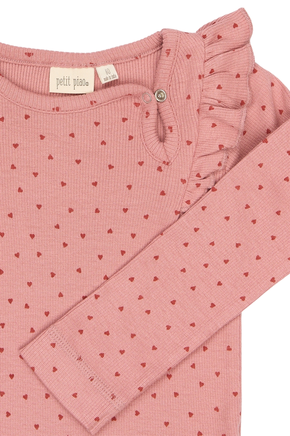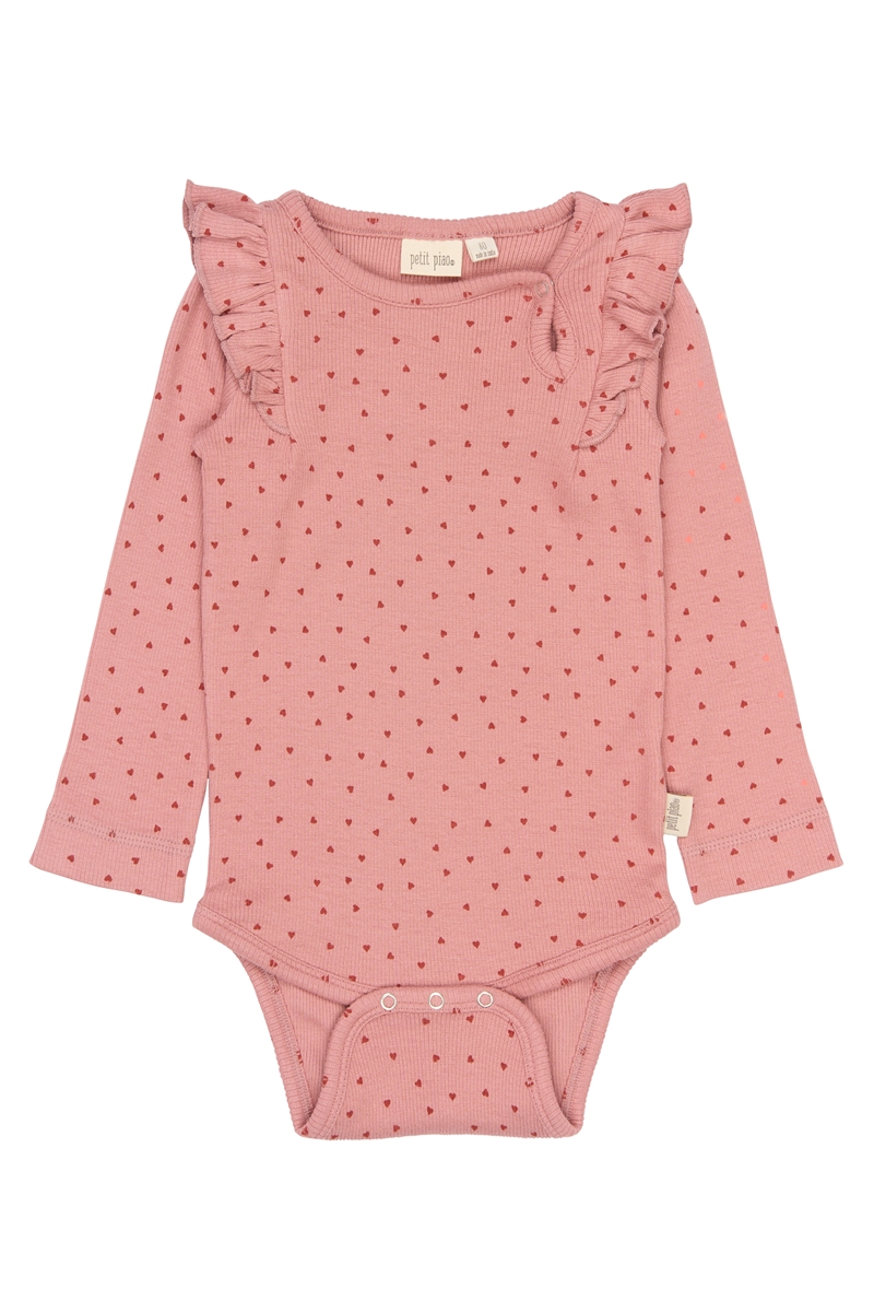 Opdag den charmerende Petit Piao Body Sonja i farven Dusty Rose Heart, en sand fryd for øjet med sit delikate hjertemønster.