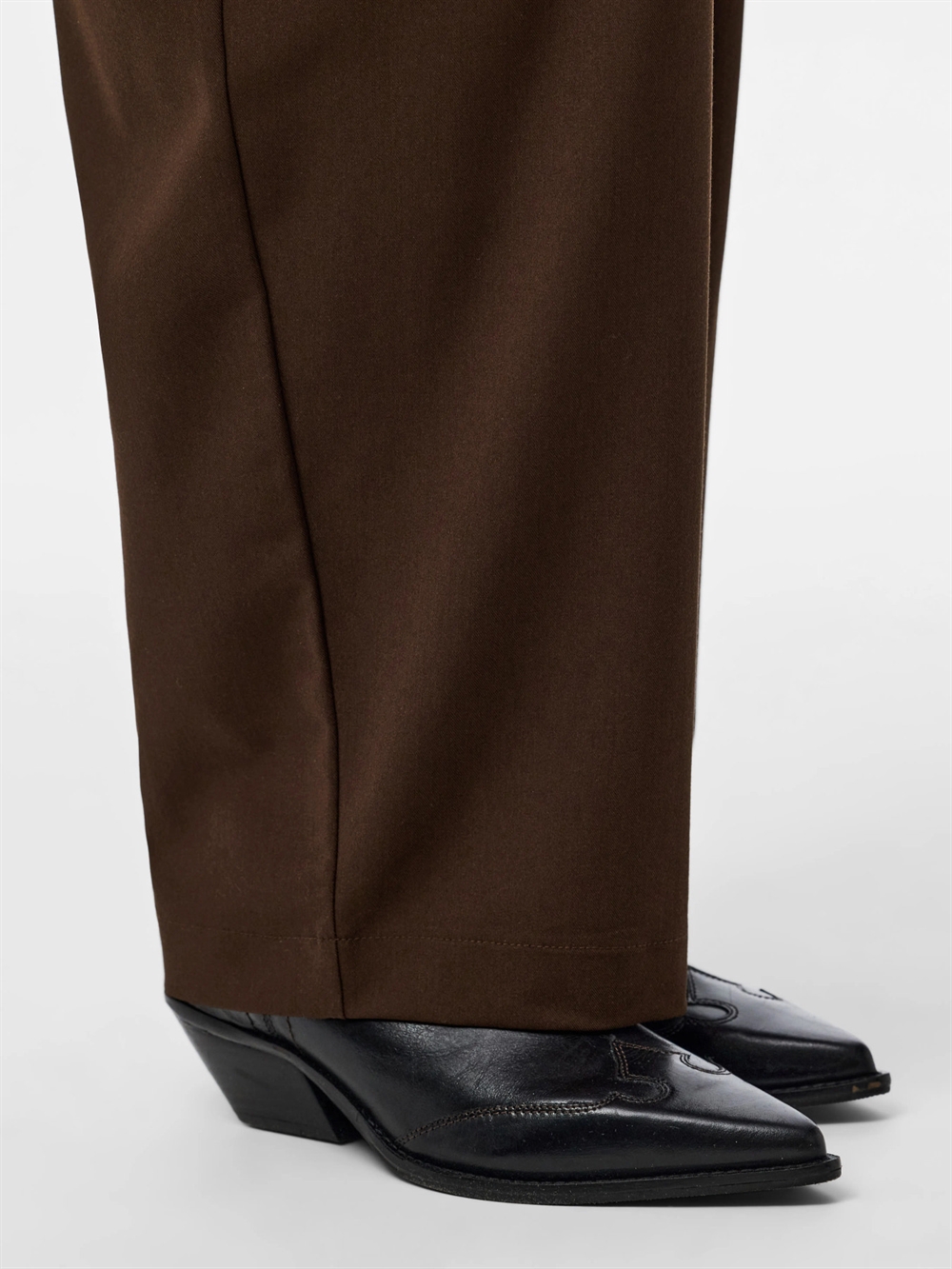 Det bløde stof føles behageligt mod huden, og takket være stoffets elasticitet sikres fuld bevægelsesfrihed, hvilket gør dem ideelle til alt fra dagligdags brug til særlige anledninger. Den dybe 'Hot Fudge' brun farve forbliver intens og levende, selv efter gentagen vask.