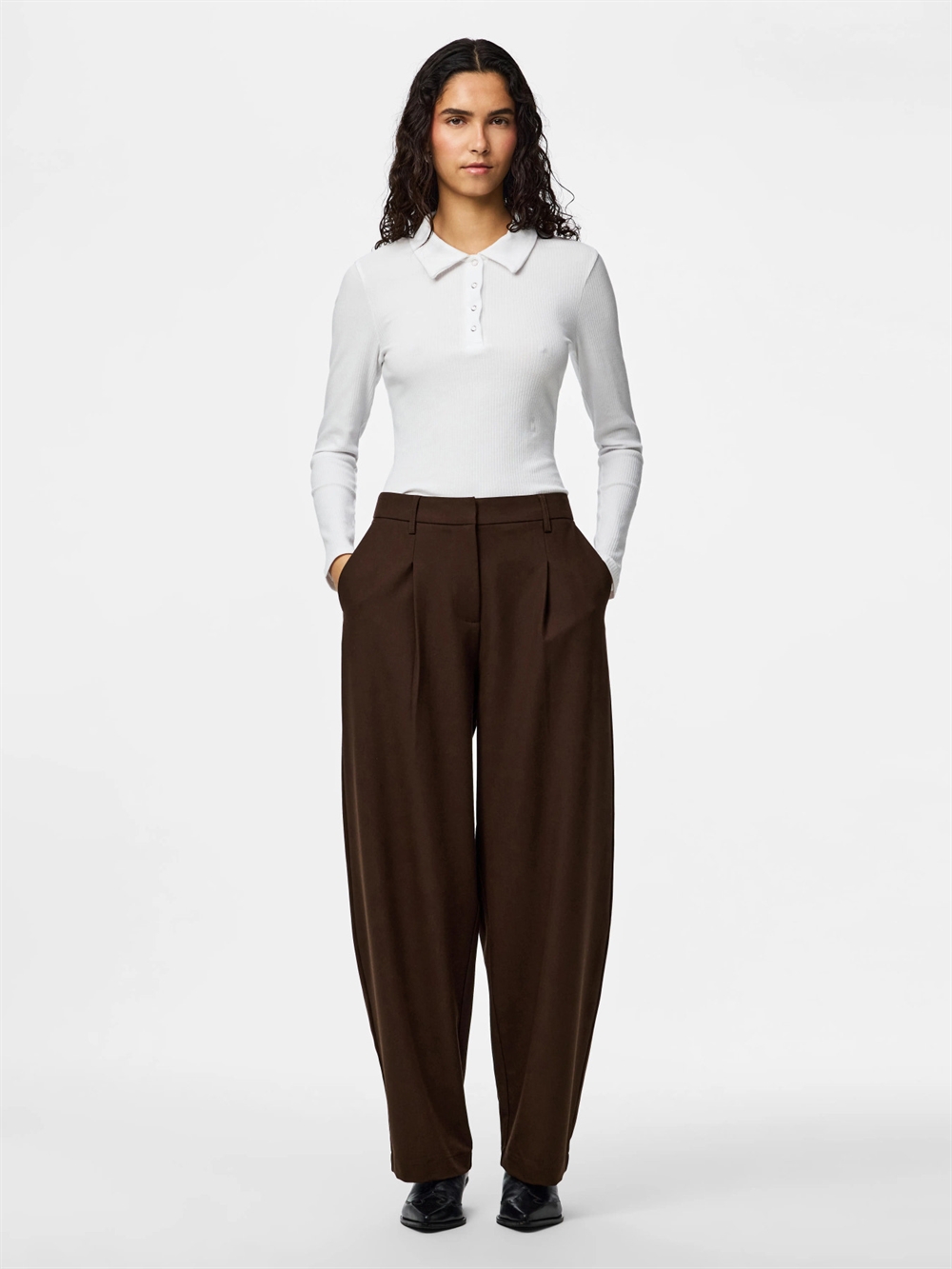 Uanset dit valg, vil disse bukser tilføje et touch af ubesværet elegance til din garderobe.Bestil dine Pieces Bukser Bosella Barrel - Hot Fudge nu, og investér i et stykke tøj, der lover både stil og komfort i din daglige påklædning.