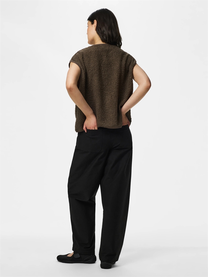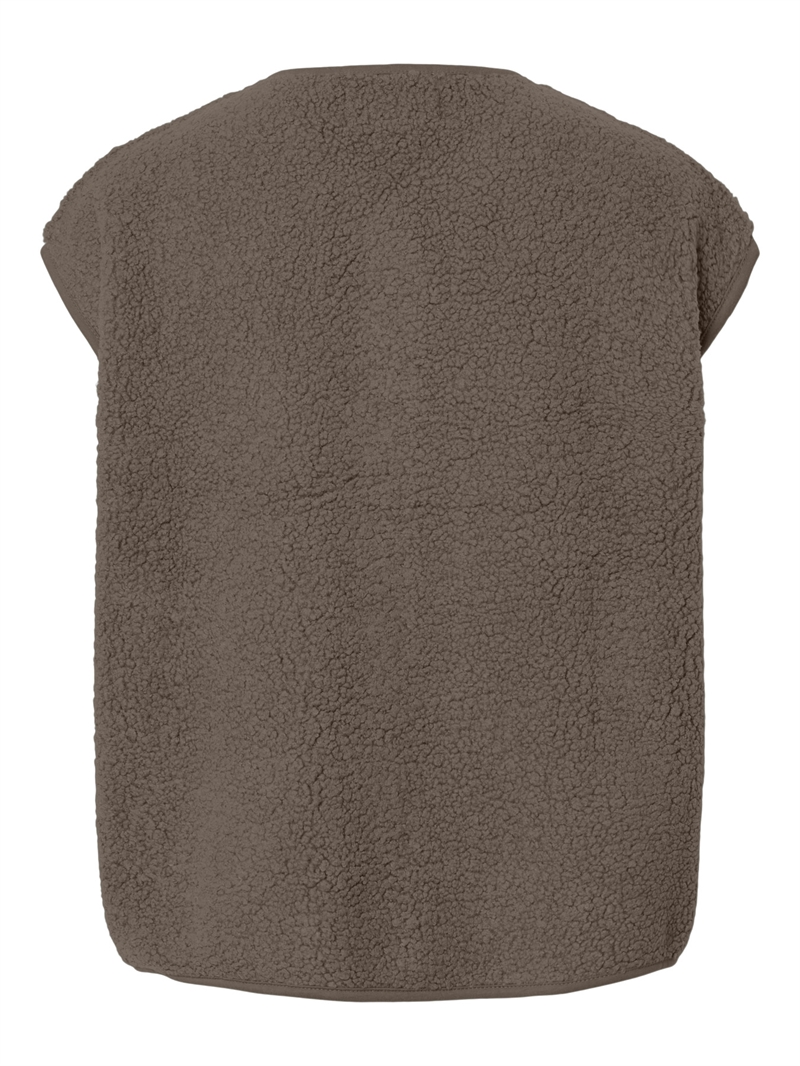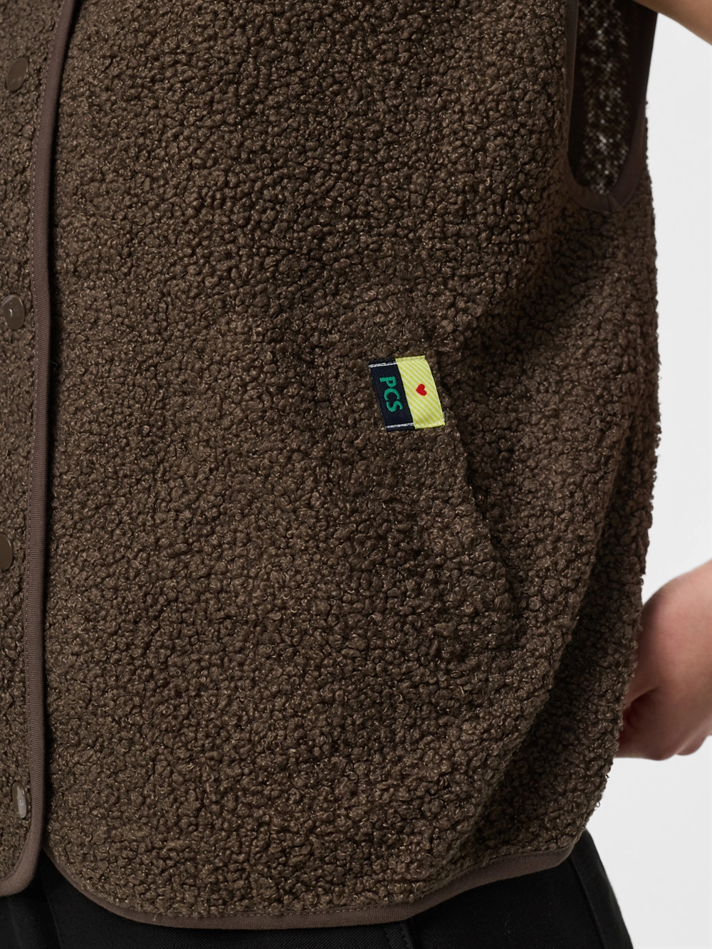 PIECES Katty Vest – Brun Teddy i recycled polyester til piger og teens