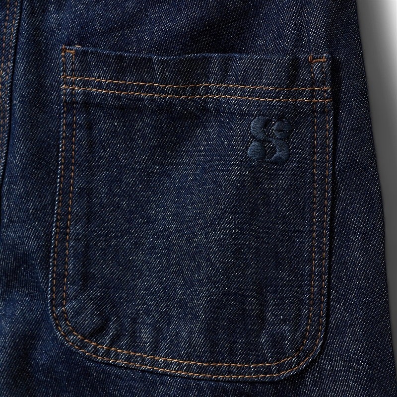 Bukserne er fremstillet i mørkeblå denim og har et regulært fit, der sikrer en flatterende silhuet. Med en klassisk lynlås- og knaplukning er disse jeans både praktiske og stilfulde. De to store baglommer tilføjer ikke kun til det æstetiske look, men er også praktiske til opbevaring af små genstande. De skrå forlommer forstærker buksernes funktionalitet og tilføjer et moderne twist. Den klassiske brune syning komplimenterer den mørkeblå farve og tilføjer et unikt touch til designet.