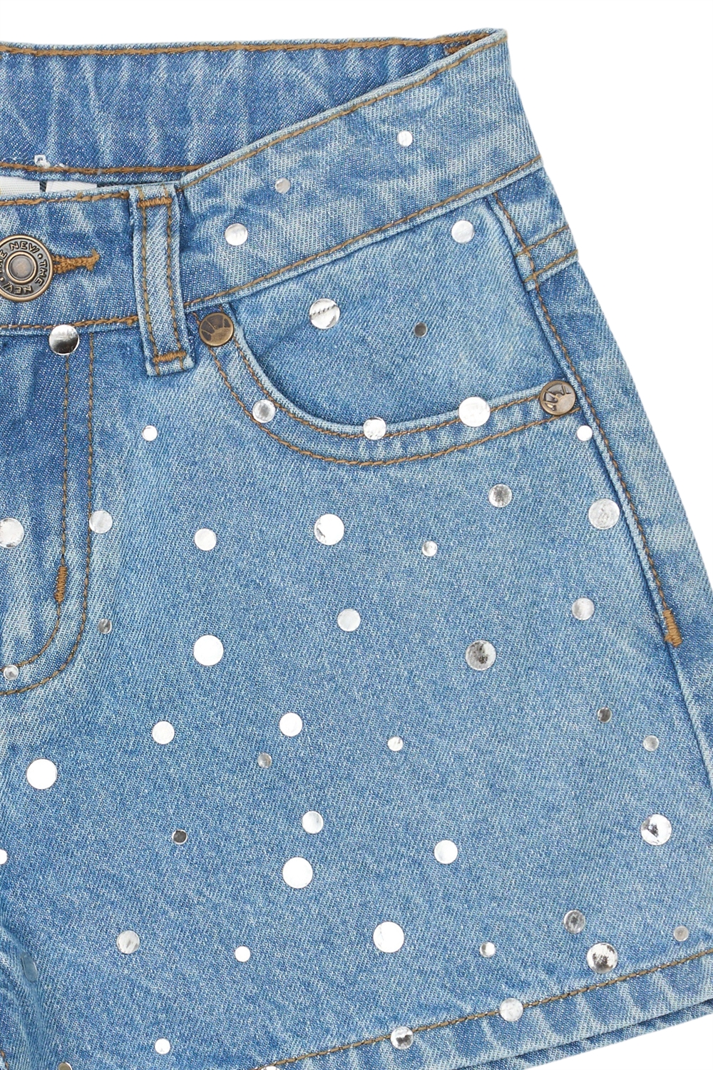 Denim shorts fra The New med five-pocket design, bæltestropper, knaplukning og glimmerdetaljer.