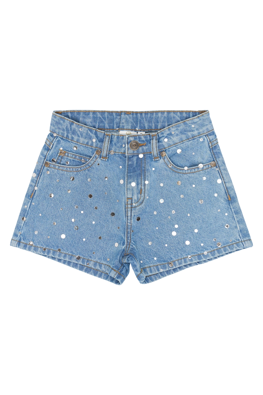 De små skinnende prikker giver The New Romina denim shorts et iøjnefaldende og legende udtryk. Det løfter looket og gør dem nemme at style med både enkle t-shirts og finere toppe.