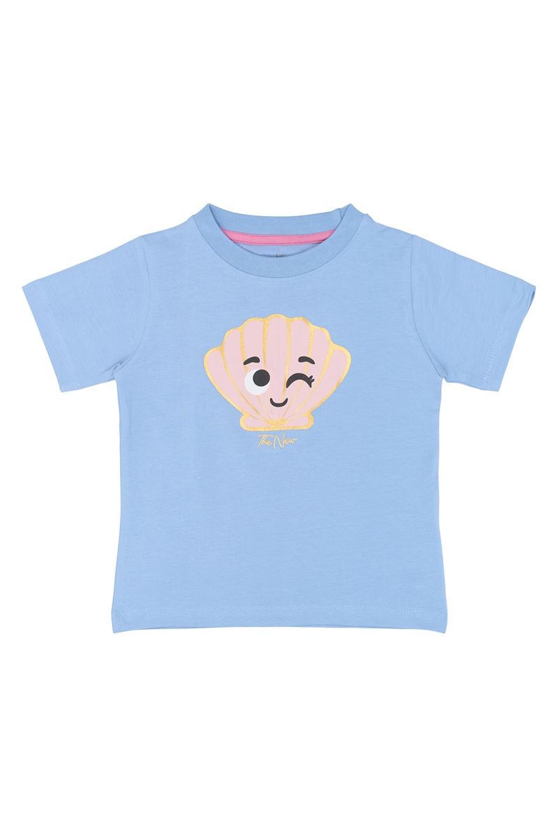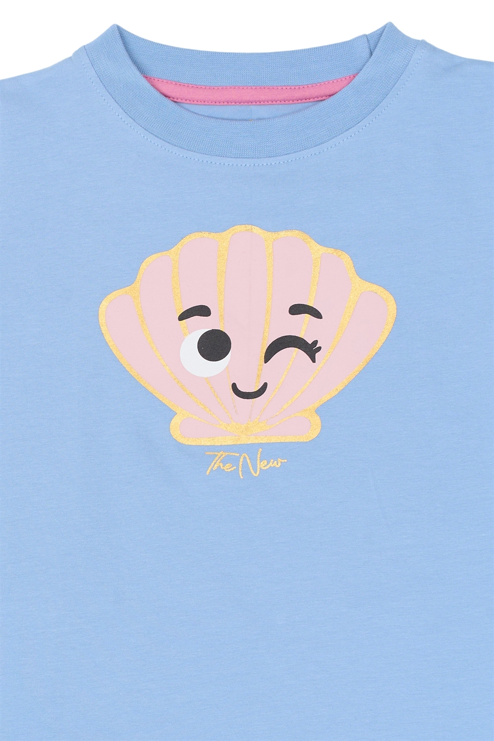 * Brand: The New Siblings * Type: Kortærmet t-shirt * Målgruppe: Små piger * Materiale: 95% økologisk bomuld, 5% elastan * Print: Muslingemotiv på front * Hals: Rund hals