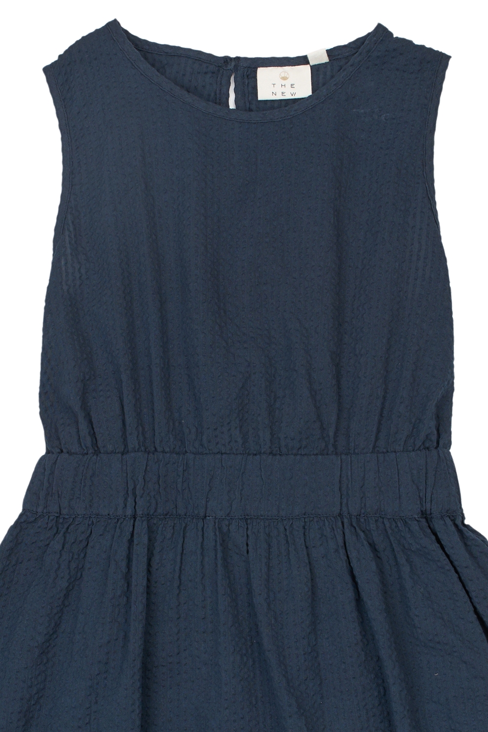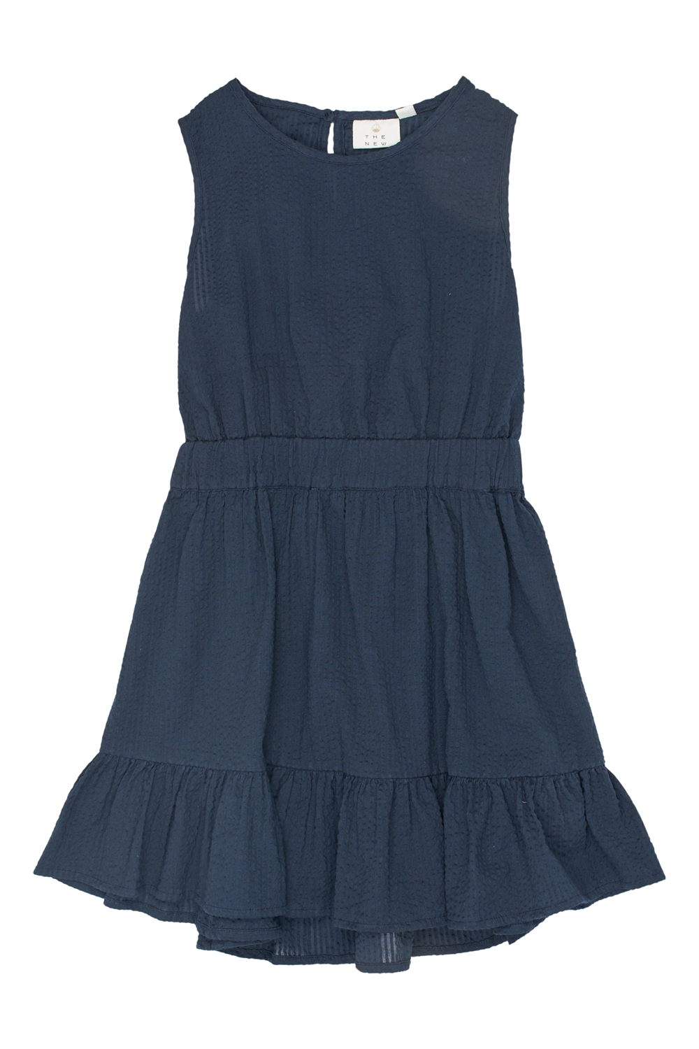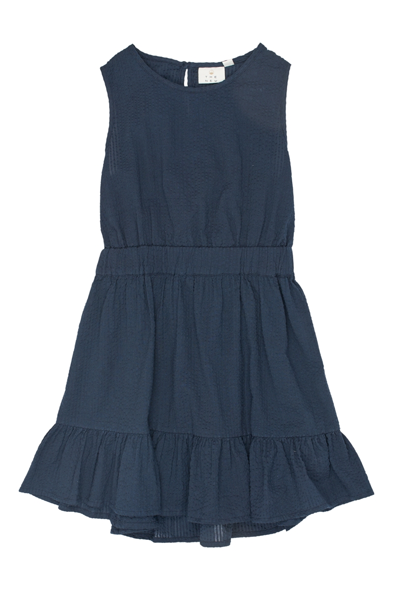 Ærmeløs kjole fra The New med rund hals, elastisk talje, nøglehulslukning bagpå og flæsekant i nederdelen.
