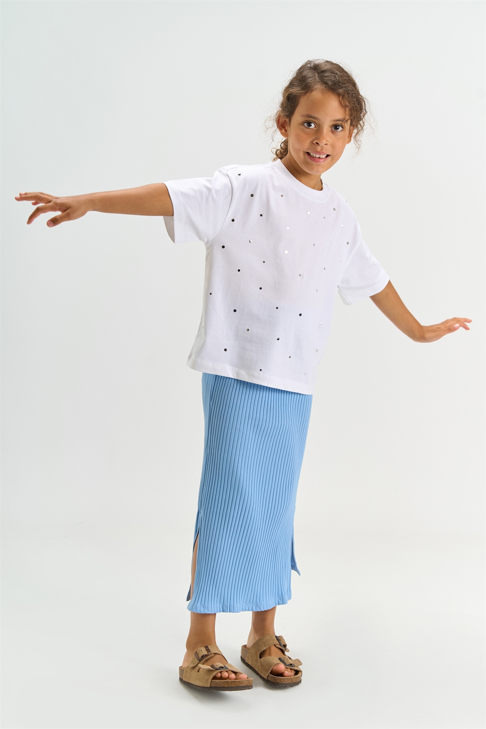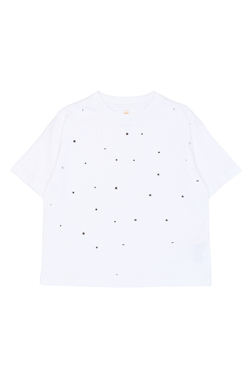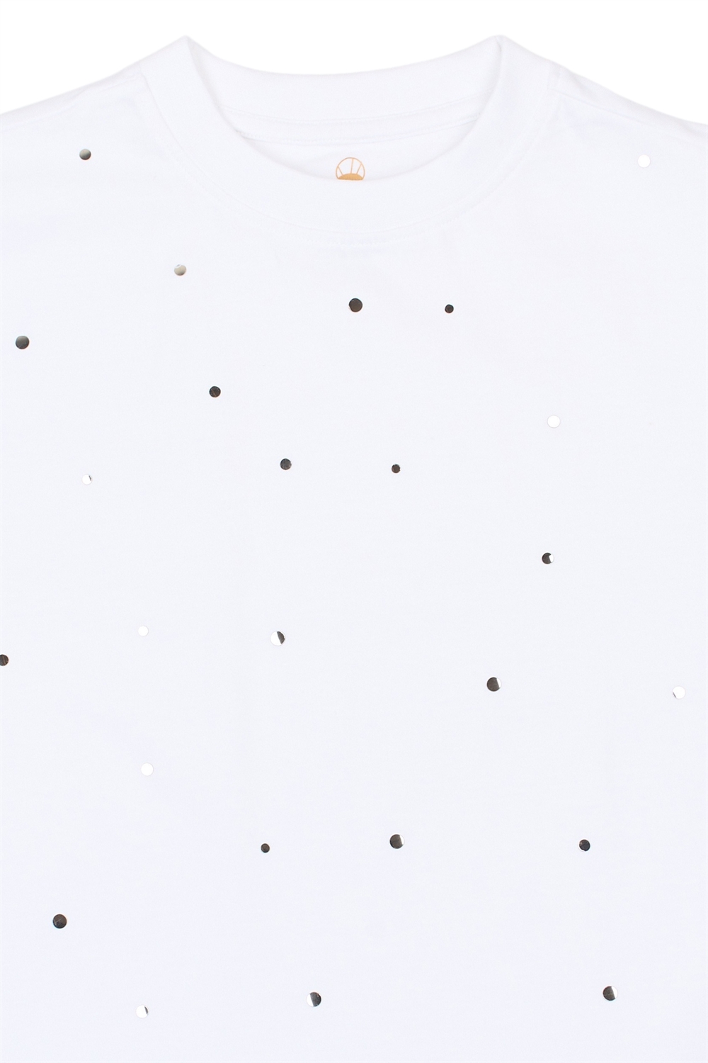 Kortærmet t-shirt fra The New med rund hals, afslappet pasform og små glitrende prikker på fronten.