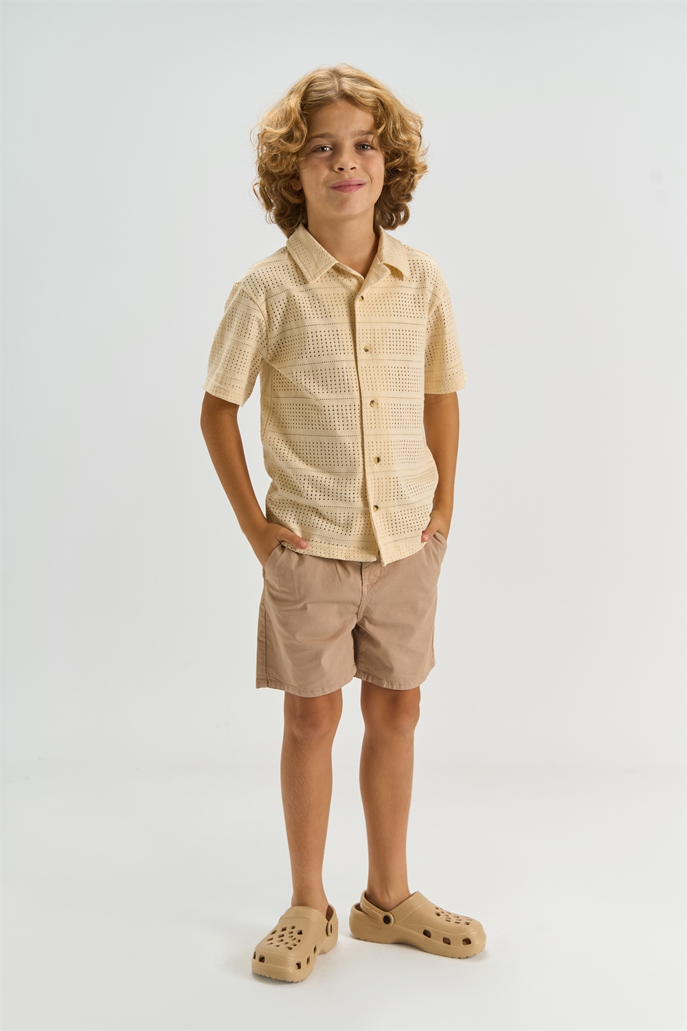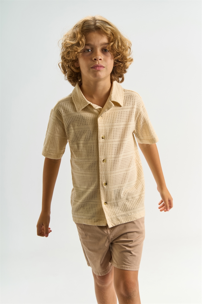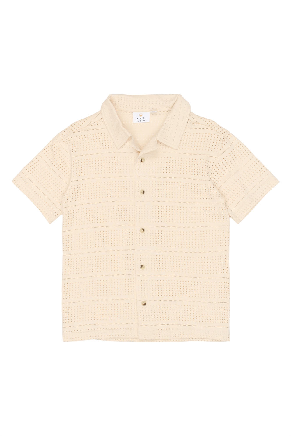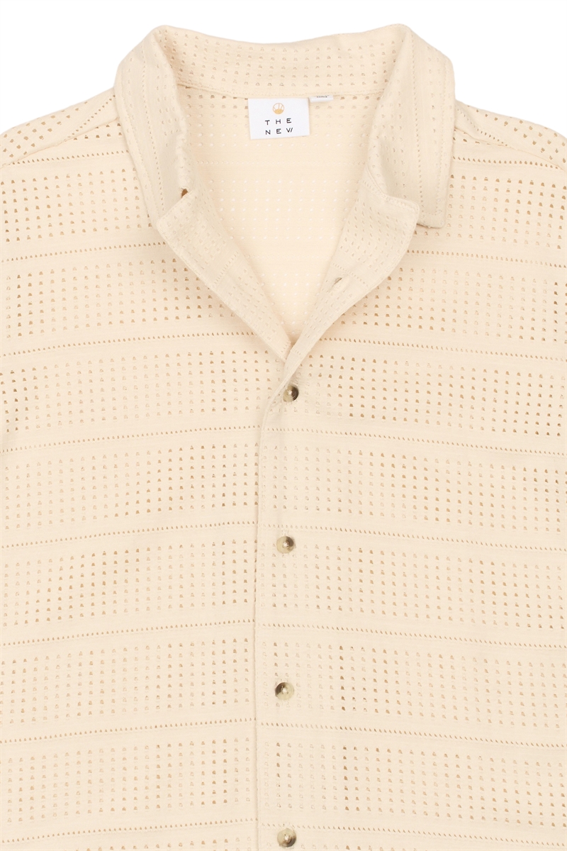 Kortærmet skjorte fra The New med klassisk krave, knaplukning og let perforeret struktur.