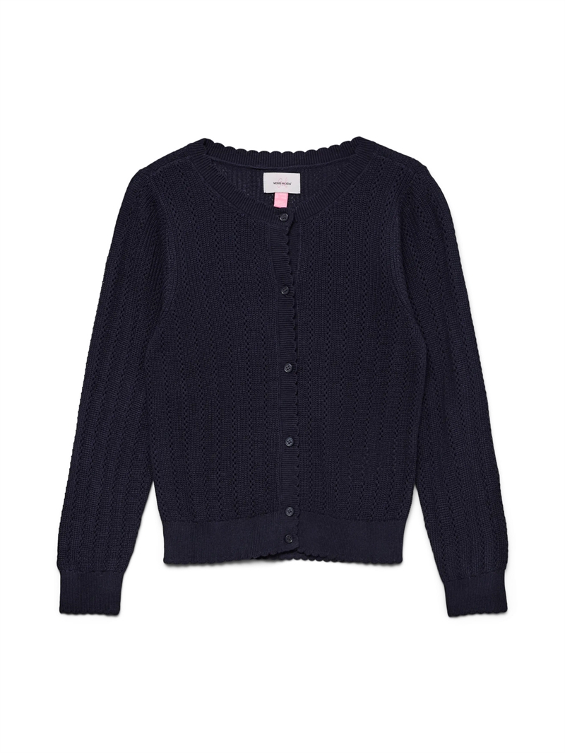 Opdag den elegante og hyggelige Vero Moda Girl Strik Cardigan Newlex i farven Navy, en uundværlig tilføjelse til enhver ung fashionistas garderobe