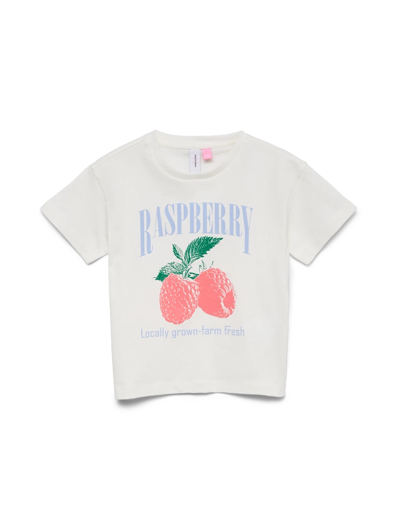 Farven hvid gør den let at kombinere med andre beklædningsgenstande i enhver farve og stil, hvilket gør den til et alsidigt valg i enhver piges garderobe. Uanset om det er til en dag i skolen, en eftermiddag i parken eller en særlig familiebegivenhed, vil denne T-shirt fra Vero Moda Girl sikre, at din pige ser trendy ud og føler sig fantastisk.